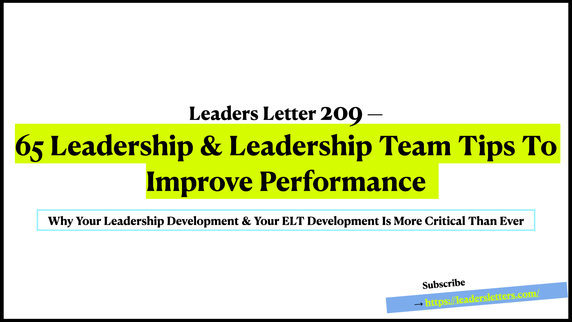Leaders Letter 209 - Why Leadership Team Development Is More Critical Than Ever