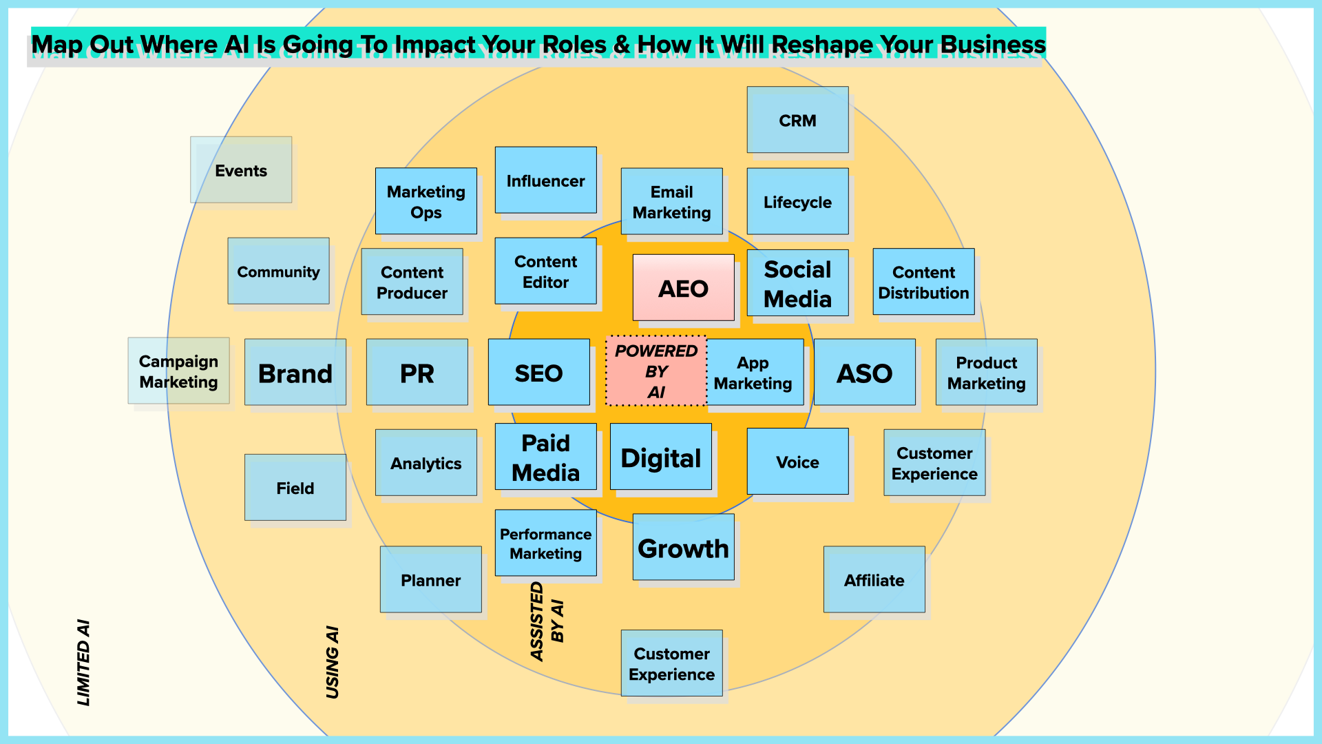 Map Out AI Roles: Understand how AI will make team skills more blended and impact roles (e.g., the addition of a new AEO role and where AI will impact, say your Product and Marketing departments - this exercise is going to be essential)