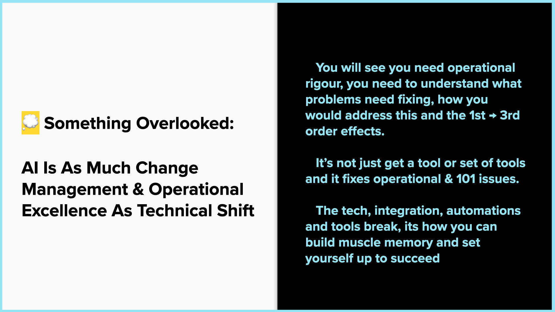 Operational and Transformational Shift: AI is not just a technical change but is equally about change management and operational excellence - this is where most have got it wrong so far